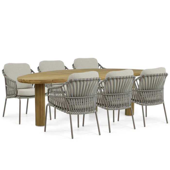 Geef jouw tuin een moderne en natuurlijke uitstraling met de 4 Seasons Outdoor Capalbio diningstoelen en de volledig teakhouten Leafline dining tuintafel. Deze stijlvolle 7-delige tuinset is perfect voor sfeervolle diners en gezellige avonden met familie en vrienden. De Capalbio diningstoelen, met hun stevige rvs-frame en rope zit- en ruggedeelte, sluiten prachtig aan bij de robuuste en ruime Leafline dining tuintafel. Dankzij het gebruik van hoogwaardige materialen zoals rvs, rope en teakhout is deze set niet alleen elegant, maar ook duurzaam en bestand tegen diverse weersomstandigheden. Kom proefzitten en ontdek deze luxe tuinset in een van onze 12 Tuinmeubelshop XXL Experience Stores!