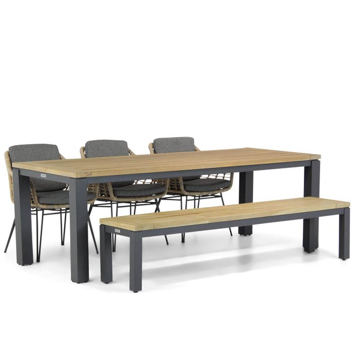 De Lifestyle Veneto picknickbank 200 x 40 cm is een strakke en eigentijdse teakhouten picknickbank uit de collectie van Tuinmeubelshop. Het pootstel is gemaakt van aluminium en het blad van duurzaam teakhout. Het voordeel van aluminium is dat het licht van gewicht is, sterk is en niet kan roesten. De tuinbank is gemaakt van duurzaam teakhout afkomstig van gecertificeerde plantages uit Indonesië. De tuinbank is voorzien van het Indonesian Legal Wood® Label, wat betekent dat het teakhout een duurzame afkomst heeft. De Veneto picknickbank 200 x 40 cm is een 3-persoons tuinbank. Het teakhout is behandeld met een Old Teak Greywash finish, wat de tuinbank een stoere en tijdloze uitstraling geeft. De stoere uitstraling van deze tuinbank uit zich na verloop van tijd in de natuurlijke werking van het teakhout, zoals kleine haarscheurtjes en vergrijzing. Je kunt ervoor kiezen om de tuinbank volledig te laten vergrijzen of om de kleur te behouden, zoals de tuinbank uit de verpakking komt. Hiervoor zijn de speciaal ontwikkelde Garden Collections onderhoudsproducten beschikbaar. Het is mogelijk om de tuinbank het hele jaar buiten te laten staan. Wij adviseren je om je teakhouten tuinmeubels niet af te dekken met een afdekhoes.