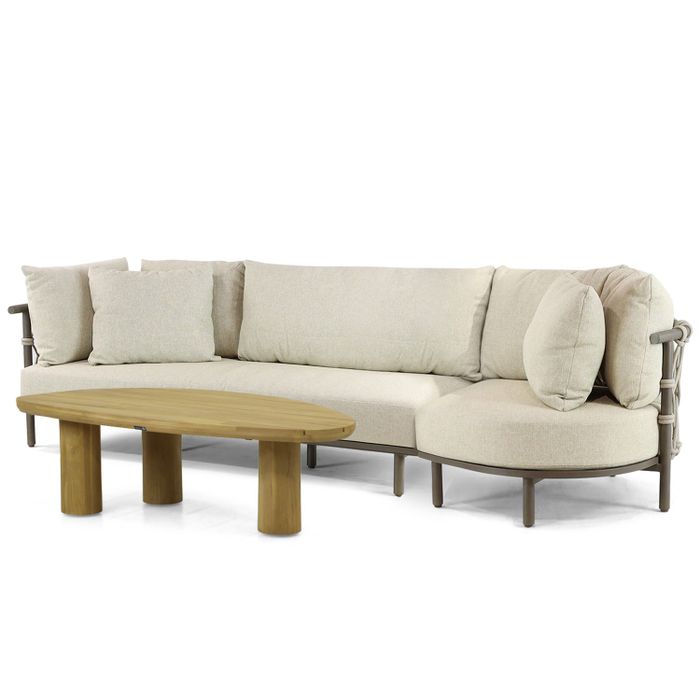 De 4 Seasons Outdoor Ezra organisch loungeset 3-delig is de perfecte keuze voor wie comfort, stijl en functionaliteit in de tuin wil combineren. Deze moderne loungeset bestaat uit een ruime open 3-zitsbank, een royaal island en de unieke Riah tafel. De loungeset is vervaardigd uit aluminium en rope, materialen die niet alleen duurzaam, maar ook weerbestendig zijn. De waterdichte kussens bieden optimaal comfort en zijn bestand tegen regen en vuil. De Riah tafel, met een organisch gevormd blad van teakhout en een bladmaat van 120 cm, voegt een natuurlijke en elegante touch toe aan de set. Kom proefzitten in een van onze 12 Tuinmeubelshop XXL Experience Stores en ervaar zelf het comfort en de luxe van deze set!