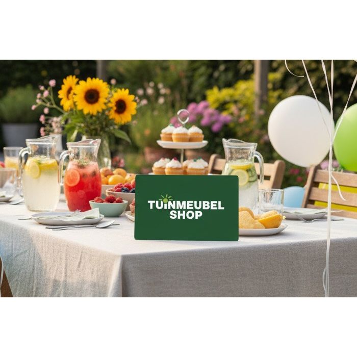 Vind jij het leuk om iemand te verrassen met een prachtige cadeaubon? Bij Tuinmeubelshop van der Garde is de cadeaubon te verzilveren voor iets prachtigs voor in de tuin zoals een parasol, tuinset, loungeset en veel meer. De cadeaubon wordt geleverd in een luxe weggeef box.