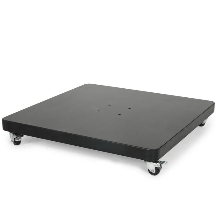 Ondanks het zware gewicht is de parasolvoet eenvoudig te verplaatsen dankzij de vier stevige wielen.