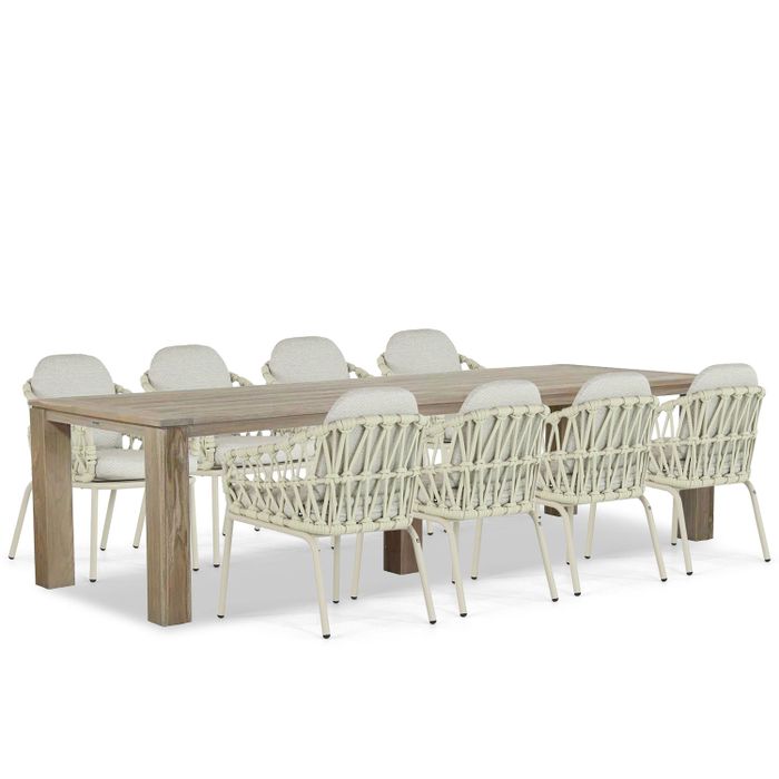 Ben jij op zoek naar een modern tuinset met een frisse look? Dan is de Coco Barcelona dining tuinstoel in combinatie met de Garden Collections Brighton dining tuintafel 300 x 100 cm een pareltje voor in jouw achtertuin. De Coco Barcelona dining tuinstoel is gemaakt van alumnium en rope. De tuinstoel is licht van gewicht en eenvoudig te verplaatsen. De Garden Collections Brighton dining tuintafel is volledig gemaakt van teakhout. Dit zorgt voor een natuurlijke look in iedere tuin. De Coco Barcelona/Brighton 300 cm dining tuinset heeft plaats voor 8 tot 10 personen. Je kunt ook jouw eigen tuinset samenstellen uit onze grote collectie tuinmeubelen. Neem gerust contact met ons op of kom eens langs in één van onze megastores. Wij adviseren je graag!