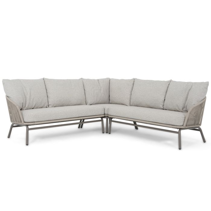 De Coco Livo hoek loungeset 3-delig is een stijlvolle en comfortabele loungeset met een warme, moderne uitstraling. Het slanke aluminium frame in mocha (donkerbruin) in combinatie met het elegante rope design zorgt voor een luchtige en luxe look. Dankzij de royale hoekopstelling geniet je van optimaal zitcomfort en voldoende ruimte om heerlijk te ontspannen.