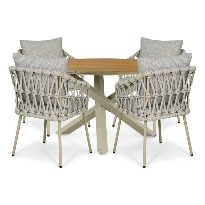 De Coco Oliva/Ancona 125 cm dining tuinset 5-delig is een compacte, stijlvolle tuinset met een moderne en natuurlijke uitstraling. De combinatie van vier elegante Coco Oliva diningstoelen en de ronde Lifestyle Ancona diningtafel van 125 cm zorgt voor een gezellige en praktische opstelling op jouw terras of balkon.