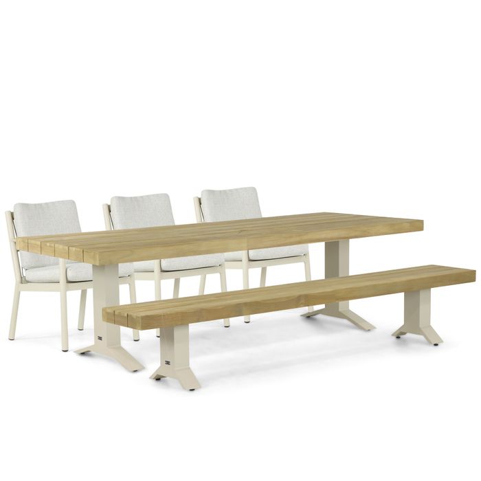 Combineer stijl en functionaliteit in jouw tuin met de Superior dining tuintafel, Coco Sevilla diningstoelen en een Santika Superior picknickbank. Deze 5-delige tuinset biedt een prachtige mix van modern design en informele gezelligheid. De Coco Sevilla diningstoelen zorgen voor een eigentijdse uitstraling en ultiem zitcomfort, terwijl de Santika Superior picknickbank een speels en functioneel element toevoegt. De Superior dining tuintafel met zijn robuuste teakhouten blad en stevige aluminium frame vormt het stijlvolle middelpunt van deze set. Kom proefzitten en ervaar deze unieke combinatie in een van onze 12 Tuinmeubelshop XXL Experience Stores!