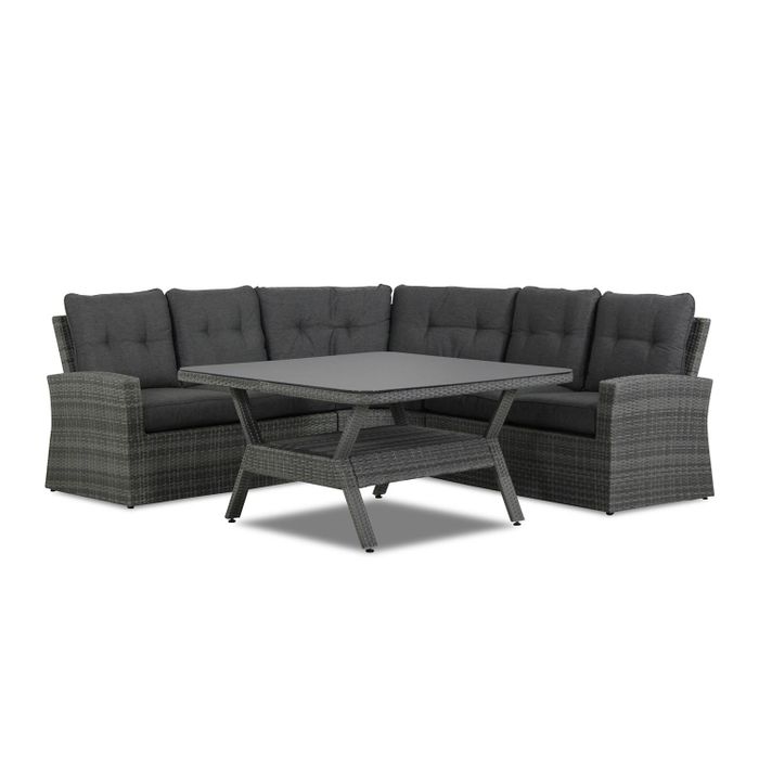 Ontspan optimaal in dit heerlijke loungeset. De Paola loungeset heeft een robuuste uitstraling door de brede armleuningen, de royale XL hoek en de dining loungetafel. De hoge loungetafel maakt het mogelijk om eenvoudig vanuit het loungeset een hapje te eten. Zo kun je zo lang mogelijk van het buitenleven genieten. Je kunt ook jouw eigen loungeset samenstellen uit onze grote collectie tuinmeubelen. Neem gerust contact met ons op of kom langs in 1 van onze Megastores. Wij adviseren je graag!