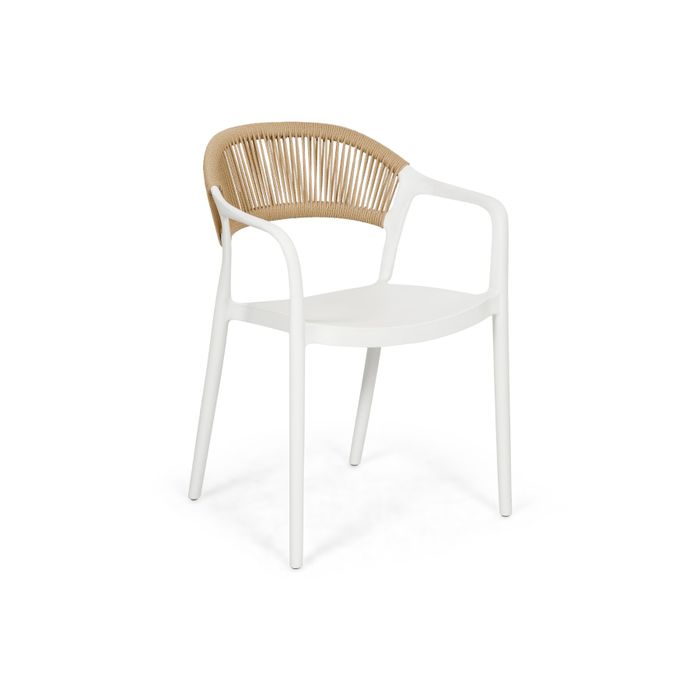 Dankzij het eigentijdse ontwerp met open rugstructuur oogt de stoel luchtig en elegant. Perfect te combineren met zowel witte, zandkleurige als houten tuintafels.