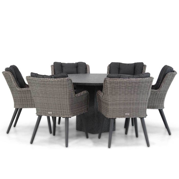 Garden Collections Boston/Graniet 140 cm rond dining tuinset 7-delig