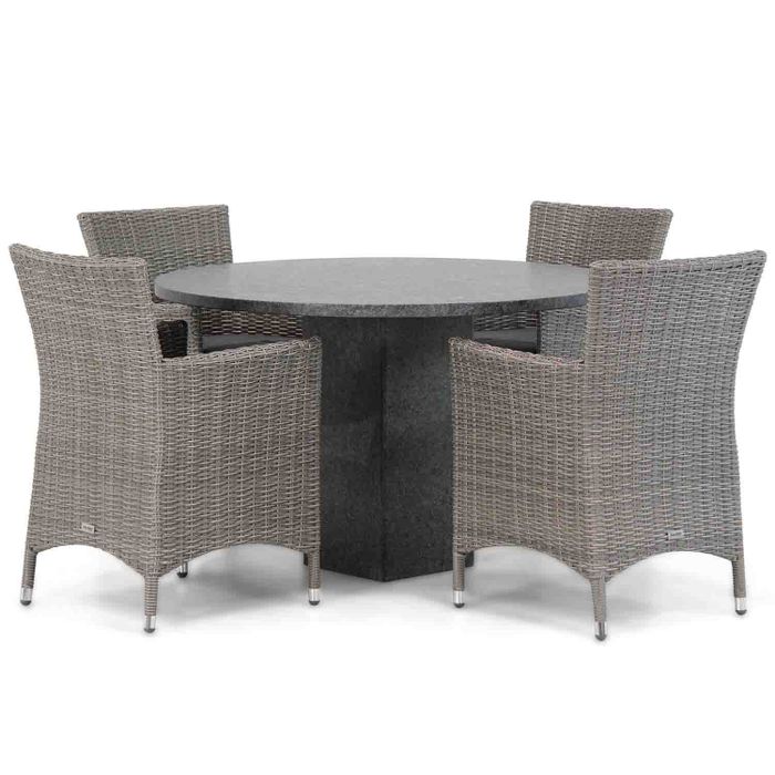 De Garden Collections Dublin/Graniet 120 cm rond dining tuinset 5-delig bestaat uit: