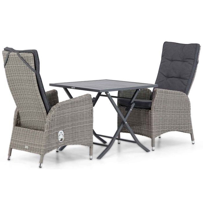 2 x Garden Collections Lincoln dining tuinstoel verstelbaar 1 x Lifestyle Nicola dining tuintafel inklapbaar 80 x 80 cm.
