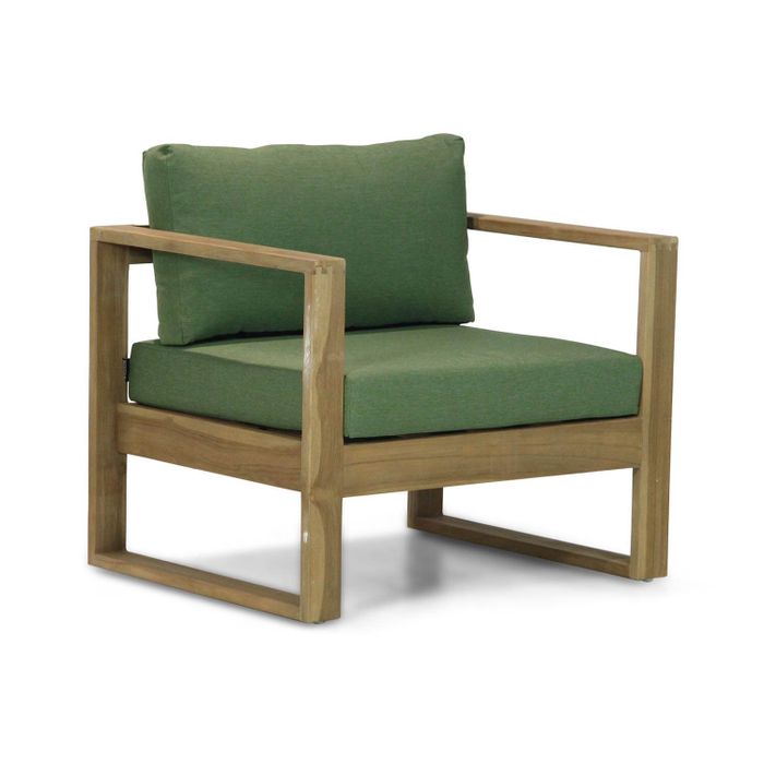 Zetel als een koning in de Garden Collections Newbury lounge tuinstoel. De royale loungestoel is voorzien van dikgevulde kussens en biedt naast dit geweldige zitcomfort een ongekende kwaliteit. Het duurzame teakhout is stevig en brengt een landelijke ambiance aan in de tuin of onder de overkapping. De Newbury loungestoel is ook te combineren met de 3-zitsbank tot een volwaardige loungeset. De groene kussens zorgen voor een gezellige sfeer. Eventueel is de loungeserie ook met grijze kussens verkrijgbaar. Laat je door onze medewerkers informeren over alle mogelijkheden.