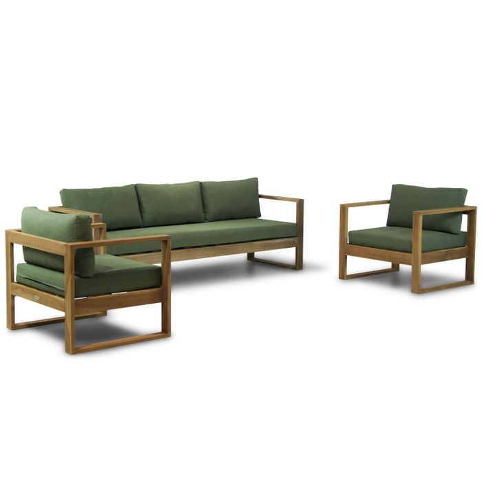 Kies voor warme kleuren en natuurlijke elementen met de Newbury loungeset van het merk Garden Collections. De stevige, teakhouten loungebank en loungestoelen worden verfraaid met stijlvolle, groene kussens. Deze zorgen voor een hoogwaardig comfort zodat jij, behalve genieten van het mooie design, ook tot rust komt en ontspant op de fraaie Newbury loungeset. Het fijne van een stoel-bank loungeset is dat je niet vast zit aan een specifieke hoekopstelling, maar dat je zelf kan experimenteren met verscheidene opstellingen in je tuin of overkapping. Je kunt ook jouw eigen loungeset samenstellen uit onze grote collectie tuinmeubelen
