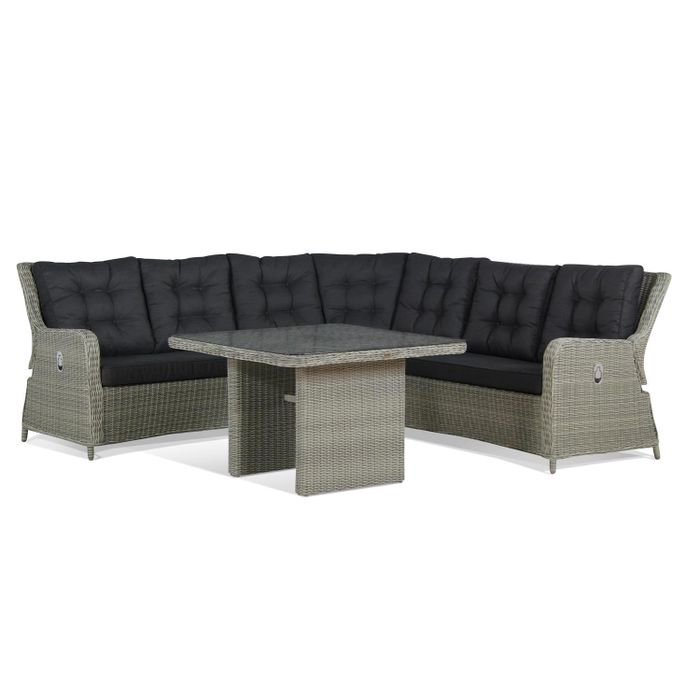 Lekker ontspannen doe je in het Wilson loungeset. Dit loungeset heeft een mooie landelijke uitstraling en staat garant voor veel gezelligheid en ontspanning. De hoge lounge tafel zorgt ervoor dat je vanaf je loungeplek gemakkelijk aan tafel kunt eten. Dit loungeset is uitgebreid met een extra middenelement en een lounge stoel. Zo heb je nóg meer zitplaatsen. Ideaal!