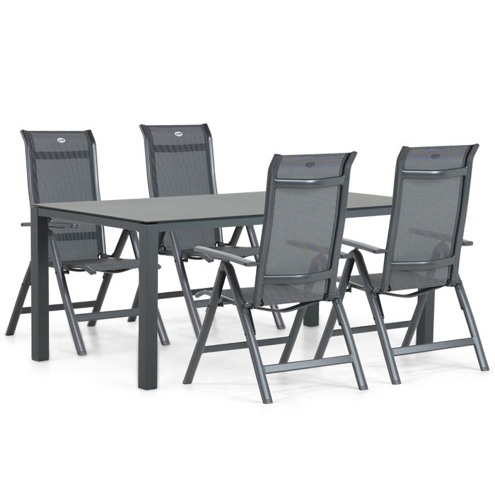 Geef jouw tuin een stijlvolle en comfortabele uitstraling met de Hartman Alice standenstoelen en de ruime Mateo dining tuintafel van 180 x 90 cm. Deze moderne tuinset biedt plaats aan vier personen en is ideaal voor gezellige diners of ontspannen momenten in de buitenlucht. De Mateo dining tuintafel, met zijn stevige aluminium frame en krasbestendig HPL-tafelblad, is onderhoudsvriendelijk en ontworpen om jarenlang mee te gaan. De Hartman Alice standenstoelen, met een aluminium frame en een rug- en zitgedeelte van textileen, bieden ultiem comfort dankzij hun verstelbare rugleuning. Kom deze luxe tuinset zelf ervaren in een van onze 12 Tuinmeubelshop XXL Experience Stores!
