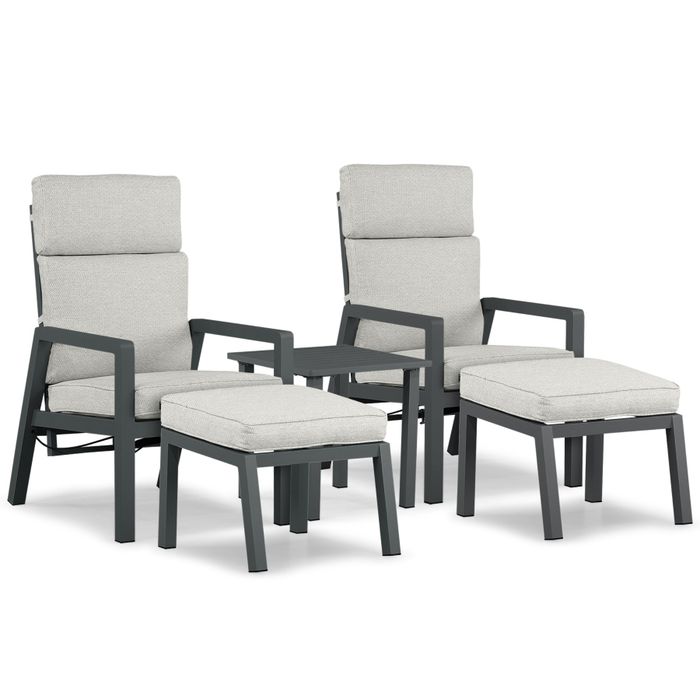 De Lifestyle Albelli bistroset 5-delig is een luxe en veelzijdige set die ideaal is voor ontspanning in een knus hoekje van jouw tuin, balkon of terras. Deze set bestaat uit twee comfortabele stoelen, twee voetenbanken en een bijpassende bijzettafel. Met het strakke design en de duurzame materialen, zoals een aluminium frame, past deze bistroset perfect in iedere buitenruimte. Geniet samen van ultiem comfort terwijl je je voeten omhoog legt en ontspant met een drankje binnen handbereik. Wil je deze set zelf ervaren? Bezoek een van onze 12 Tuinmeubelshop Experience Stores XXL!