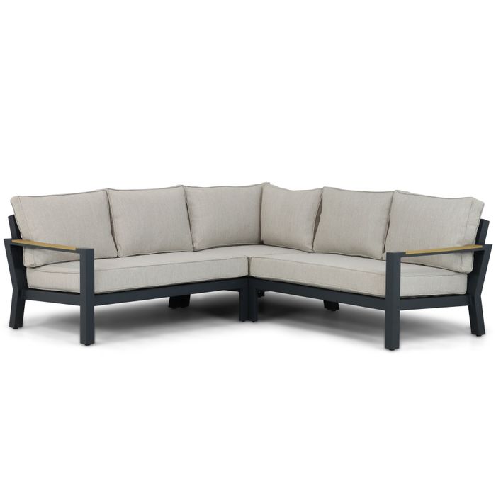Ben je op zoek naar een modern vormgegeven aluminium loungeset? Dan is de Lifestyle Bilbao hoek loungeset echt een uitstekende keuze. Een volledig aluminium loungeset, in de kleur antraciet, met bijzonder comfortabele lichtgrijze loungekussens. Deze complete loungeset beschikt over een aluminium frame dat tegelijkertijd stijlvol en stevig is. De polywood armleuningen in een teaklook geven het geheel een warme uitstraling. Het is ook mogelijk om je eigen loungeset samen te stellen uit onze grote collectie tuinmeubelen. Neem contact met ons op of bezoek een van onze Tuinmeubelshop megastores en laat je adviseren!