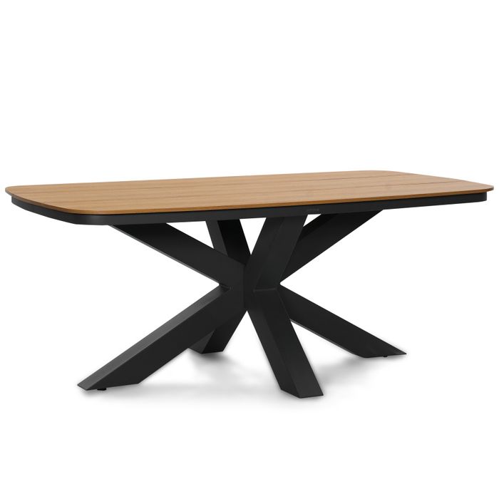 Dankzij het compacte, maar ruime formaat van 180 cm is deze tafel perfect voor middelgrote terrassen. Het karakteristieke kruispoot-onderstel geeft de tafel een stoere uitstraling en maakt hem tot een echte blikvanger in jouw buitenruimte.