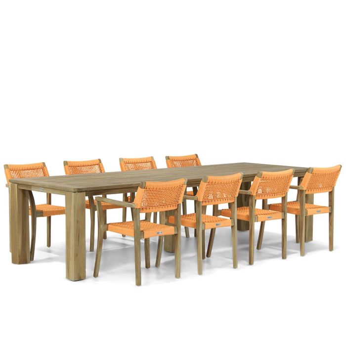 8 x Lifestyle Dallas dining tuinstoel rope stapelbaar1 x Garden Collections Brighton dining tuintafelblad 300 x 100 cm