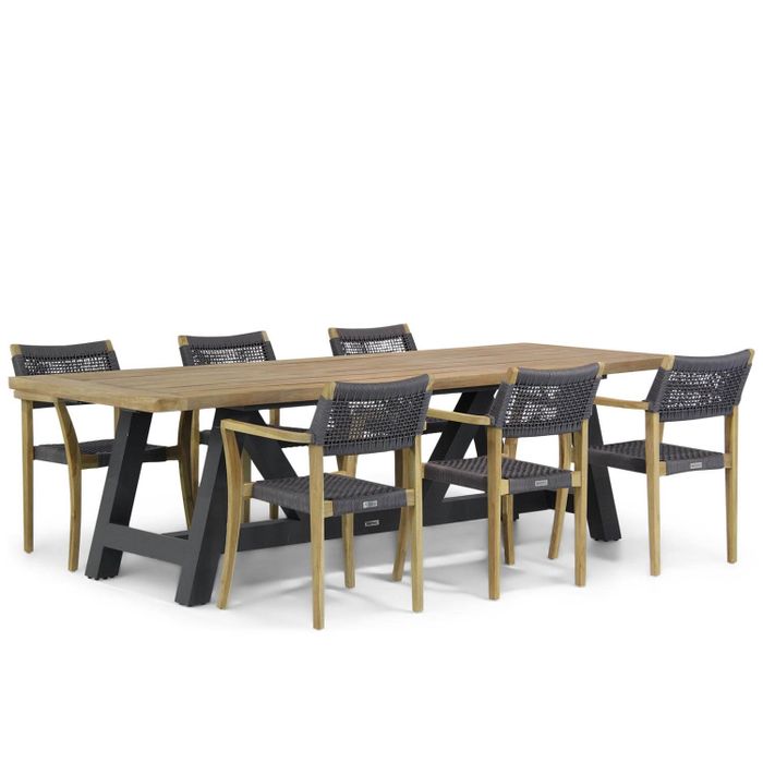 6 x Lifestyle Dallas dining tuinstoel rope stapelbaar grey1 x Lifestyle Trente tafel 260 cmdining tuintafel