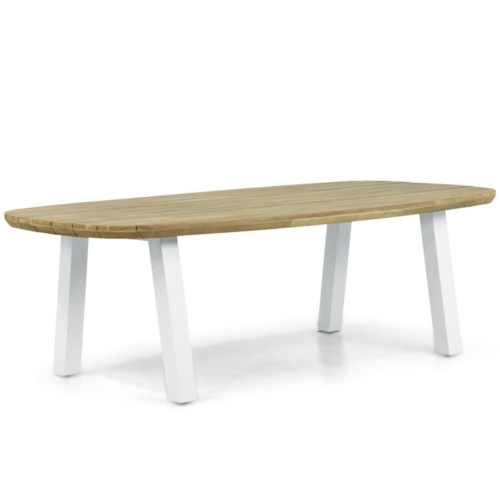 De Lifestyle Falcon/Glasgow dining tuintafel is een combinatie van onze Lifestyle Falcon en Lifestyle Glasgow series. Het Lifestyle Falcon tafelblad is volledig gemaakt van duurzaam teakhout. Het duurzame teakhout heeft een hoog natuurlijk oliegehalte, waardoor deze tuintafel zeer weerbestendig is. De fijne structuur zorgt voor een gladde afwerking en een prettig gevoel. Deze tafel kan het hele jaar buiten staan. Omdat teakhout een natuurproduct is, heeft elke tafel een unieke, robuuste uitstraling. Het hout kan door weerinvloeden krimpen of uitzetten, waardoor kleine haarscheurtjes kunnen ontstaan. Voor behoud van de kleur kun je teak protector toepassen. De Lifestyle Falcon/Glasgow dining tuintafel 240 x 120 cm heeft plaats voor 6 tot 8 personen en is ook beschikbaar in de maat 180 x 115 cm. Het pootstel van de tafel is van onze Lifestyle Glasgow serie. Het robuuste pootstel is volledig van aluminium en voorzien van een speciale poedercoating. Hiermee is het pootstel geheel onderhoudsvrij. Ook zijn er onder de poten stelvoetjes aangebracht, waarmee de tafel te stellen is.