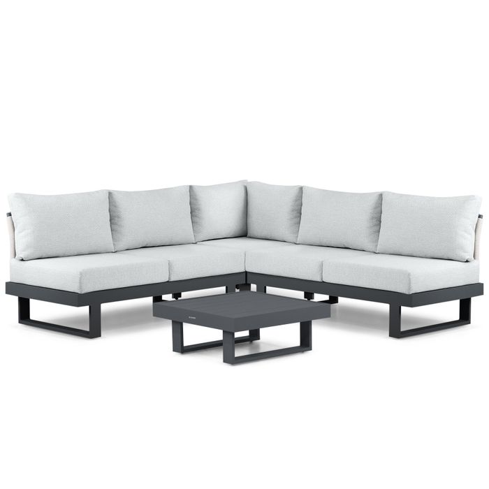 De Lifestyle Lorenzo hoek loungeset is volledig vervaardigd uit aluminium, een sterk, lichtgewicht en roestbestendig materiaal. Hierdoor is de set perfect geschikt voor buitengebruik en garandeert hij een lange levensduur zonder veel onderhoud. De strakke lijnen en de moderne afwerking in antracietkleur geven deze loungeset een luxe en tijdloze uitstraling.