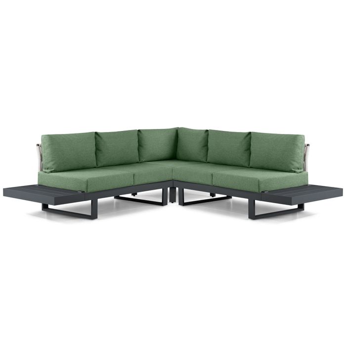 De Lifestyle Lorenzo hoek loungeset 5-delig is een stijlvolle en comfortabele toevoeging aan jouw tuin of terras. Met een antracietkleurig aluminium frame en luxe Moss Green kussens straalt deze set een natuurlijke en moderne uitstraling uit. De set bestaat uit twee open banken en een hoekmodule, waarmee je een royale en gezellige loungehoek creëert. Dankzij het gebruik van hoogwaardig aluminium is de set licht van gewicht, roestbestendig en volledig weerbestendig. De all-weather kussens zorgen ervoor dat je het hele jaar door kunt genieten van optimaal zitcomfort. Wil je deze loungeset zelf ervaren? Bezoek dan een van de 12 Tuinmeubelshop XXL Experience Stores en ontdek het comfort zelf!