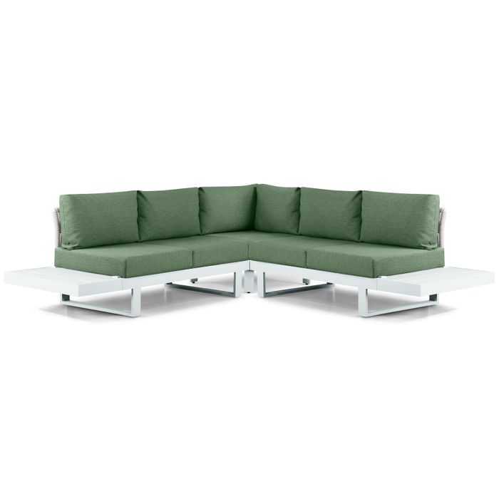 De Lifestyle Lorenzo loungeset is uitgevoerd in de frisse en natuurlijke kleur Moss Green, die harmonieus aansluit bij diverse buitenruimtes. De All Weather kussens zijn ontworpen om bestand te zijn tegen regen en andere weersinvloeden, waardoor ze het hele jaar door buiten kunnen blijven liggen. De kussens zijn gevuld met quick dry foam, dat na een regenbui snel droogt en comfortabel blijft. De hoezen zijn vuil- en waterafstotend, kleurvast en eenvoudig te reinigen, zodat jouw loungeset er altijd verzorgd uitziet. Het frame van de set is gemaakt van lichtgewicht aluminium en afgewerkt met een duurzame poedercoating. Dit zorgt voor een stevige, weerbestendige en onderhoudsvriendelijke constructie. Dankzij het modulaire ontwerp kun je de opstelling aanpassen aan jouw ruimte en wensen. Heb je vragen over de Lifestyle Lorenzo hoek loungeset of wil je advies over hoe deze set jouw tuin kan verrijken? Neem contact met ons op of bezoek één van onze megastores. Onze tuinmeubelexperts helpen je graag bij het samenstellen van jouw ideale loungeset!