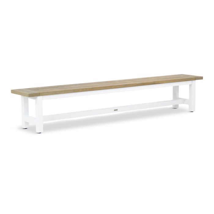 De Lifestyle Los Angeles picknickbank 260 x 40 cm is een picknickbank bijpassend bij de Los Angeles dining tuintafel uit de collectie van Tuinmeubelshop. Het dikke blad en robuuste frame maakt dit tot een dijk van een picknickbank. Het pootstel is van aluminium. Het voordeel van aluminium is dat het licht van gewicht is, sterk is en niet kan roesten. De picknickbank is gemaakt van duurzaam teakhout, afkomstig van gecertificeerde plantages uit Indonesië. De picknickbank is voorzien van het Indonesion Legal Wood® label, wat betekent dat het teakhout een duurzame afkomst heeft. Het teakhout is behandeld met een Old Teak Greywash finish, wat de picknickbank een stoere en tijdloze uitstraling geeft. De stoere uitstraling van deze picknickbank uit zich na verloop van tijd in de natuurlijke werking van het teakhout, zoals kleine haarscheurtjes en vergrijzing. Je kunt er voor kiezen om de picknickbank volledig te laten vergrijzen, of op de kleur te behouden zoals de picknickbank uit de verpakking komt. Hiervoor zijn de speciaal ontwikkelde Garden Collections onderhouds producten beschikbaar. De Los Angeles picknickbank is voorzien van een stevig pootstel, wat er voor zorgt dat de picknickbank altijd stabiel staat. Het is mogelijk om de picknickbank het hele jaar buiten te laten staan. De Los Angeles picknickbank combineert uitstekend bij de Los Angeles tuintafel.