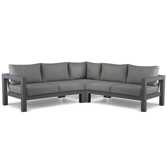 Geniet van luxe en comfort in je tuin met de Lifestyle Luca hoek loungeset 3-delig. Deze moderne loungeset heeft een strak aluminium frame en is voorzien van all-weather kussens in de stijlvolle kleur Dark Grey. De combinatie van hoogwaardige materialen en een tijdloos design zorgt ervoor dat deze set perfect past in elke buitenruimte. Dankzij het compacte formaat is deze loungeset ideaal voor zowel een ruim terras als een knusse zithoek.