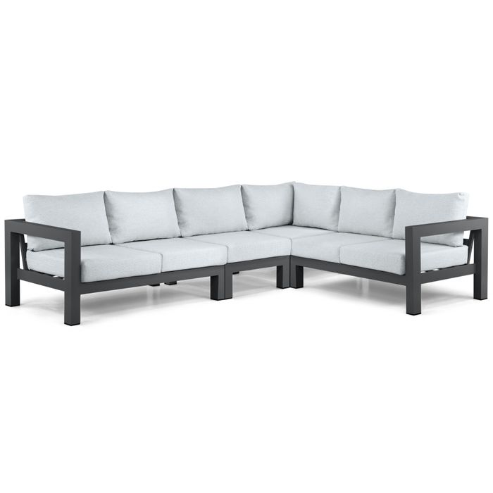 De Lifestyle Luca loungeset is vervaardigd uit hoogwaardig aluminium, wat de set lichtgewicht, roestvrij en onderhoudsvriendelijk maakt. De sterke poedercoating beschermt het frame tegen weersinvloeden en geeft de set een moderne en luxe uitstraling.