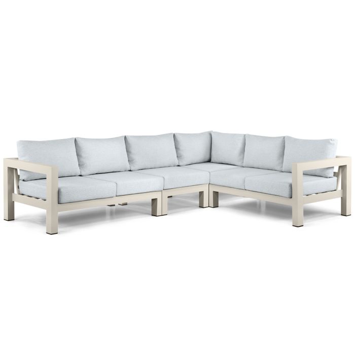 De Lifestyle Luca loungeset is vervaardigd uit hoogwaardig aluminium en voorzien van een sterke poedercoating in de kleur Loft. Dit geeft de set niet alleen een moderne en robuuste uitstraling, maar zorgt ook voor uitstekende bescherming tegen weersinvloeden, waardoor hij jarenlang meegaat.