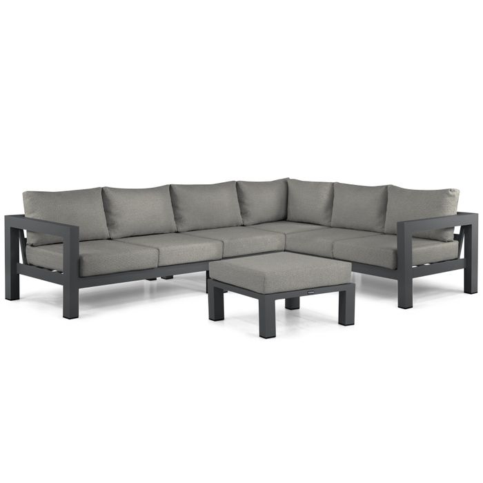 De Lifestyle Luca hoek loungeset 5-delig is de perfecte combinatie van stijl, comfort en flexibiliteit. Het strakke aluminium frame geeft de set een moderne en tijdloze uitstraling, terwijl de all-weather kussens in de kleur Dark Grey zorgen voor optimaal zitcomfort. Dankzij de toevoeging van zowel een middenmodule als een voetenbank biedt deze loungeset extra zit- en ligruimte, waardoor je optimaal kunt genieten van jouw tuin of terras. Of je nu languit wilt ontspannen, een gezellige borrel organiseert of gewoon wilt genieten van het buitenleven, deze loungeset past zich moeiteloos aan jouw wensen aan.