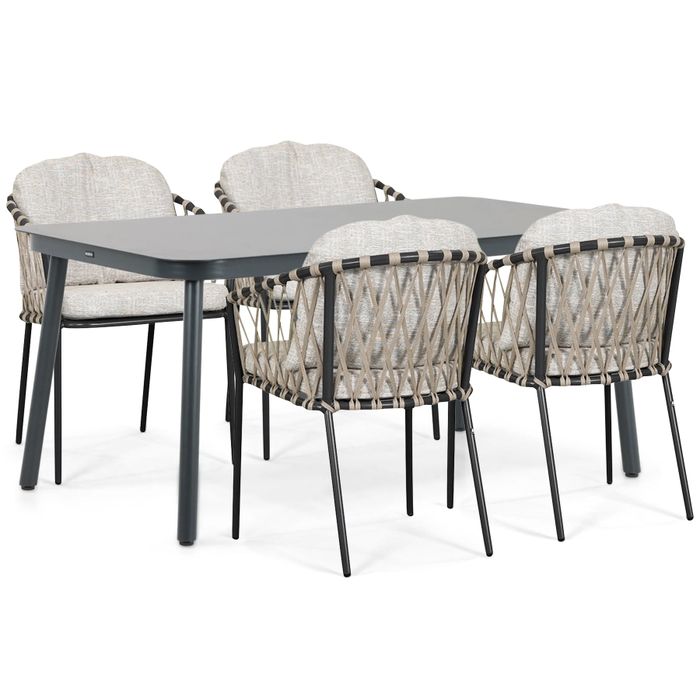 4 x Lifestyle Morano dining tuinstoel – antraciet aluminium frame met zandkleurig rope en comfortabele zit- en rugkussens