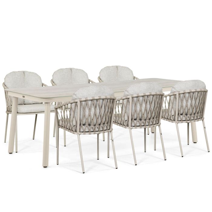 6 x Lifestyle Morano dining tuinstoel – loft (zand) aluminium frame met zandkleurig rope en comfortabele zit- en rugkussens