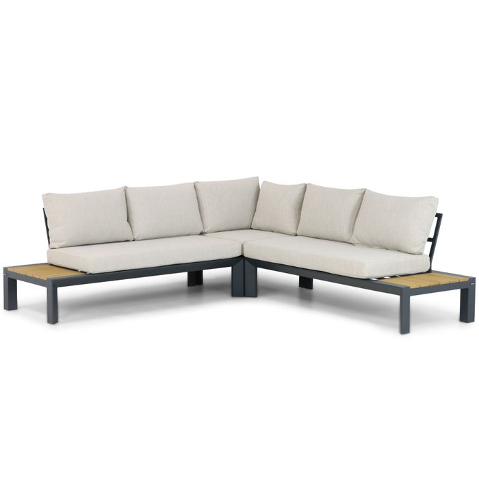De Lifestyle Navarra platform hoek loungeset is een uniek vormgegeven loungeset in de collectie van Tuinmeubelshop. Het gebruik van aluminium in combinatie met polywood zorgt ervoor dat de loungeset een zeer eigentijds design heeft. De Lifestyle Navarra loungeset is een zogenaamd platform loungeset, wat enorm aan populariteit heeft gewonnen de afgelopen tijd. Bij de open bank, links en rechts, is polywood gebruikt op de uiteinden. Dit geeft het geheel een warme en unieke uitstraling. De loungeset oogt heel open en luchtig. Zo creëer je het ultieme loungegevoel in je achtertuin of onder de veranda. De Lifestyle Navarra platformset biedt royaal plaats aan 4 tot 5 personen. Ben je nieuwsgierig geworden naar deze moderne loungeset? Kom dan langs in een van de Tuinmeubelshop megastores.