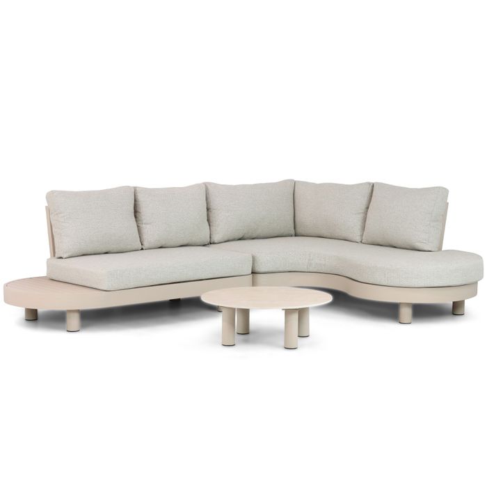 De Lifestyle Organio loungeset is zorgvuldig ontworpen in rustgevende, natuurlijke tinten. De taupekleurige kussens harmoniëren met het loftkleurige frame van het zitvlak. De kussens in deze Organio loungebank zorgen voor comfort en gezelligheid. De Lifestyle Organio heeft een schitterend bijpassende loungetafel, die voorzien is van een zogenaamde ceramic-on-top tafelblad. Deze Lifestyle Organio loungeset zorgt met zijn zachte, organische vormen voor het perfecte, ontspannen buitenmoment. Kom proefzitten in één van de Tuinmeubelshop megastores, of stel je vragen aan de online verkoper.