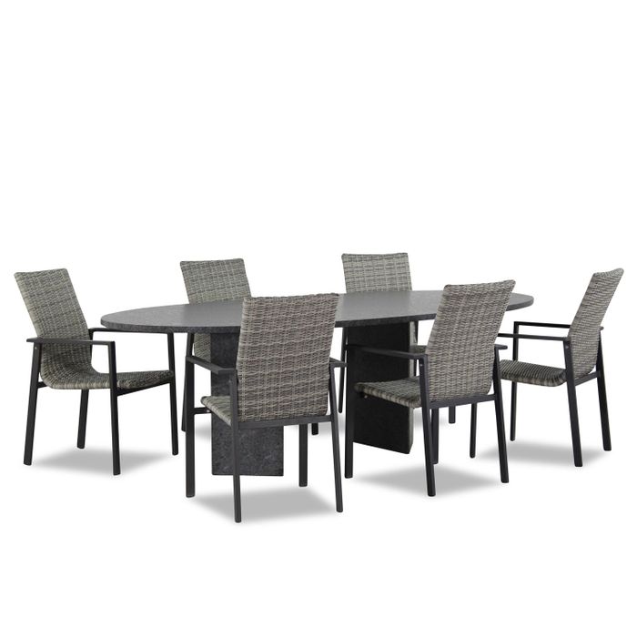 Lifestyle Upton/Graniet ovaal 240 cm dining tuinset 7-delig stapelbaar