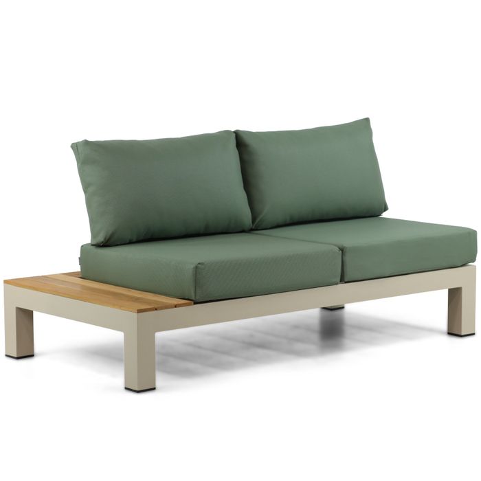 De Lifestyle Vittoria hoek loungeset 4-delig combineert luxe, comfort en functionaliteit in een stijlvol design. Het aluminium frame in de kleur Loft, afgewerkt met hoogwaardig teakhout, geeft de set een warme en eigentijdse uitstraling. De all-weather kussens in de kleur Moss Green zorgen voor een natuurlijke en rustgevende look, terwijl de bijpassende vierkante loungetafel extra gemak biedt. Of je nu ontspant met een kop koffie of geniet van een gezellige avond met vrienden, deze loungeset creëert de perfecte setting voor elk moment.