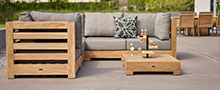 Teakhout vereist enige onderhoud. Het is belangrijk dat je het hout 1 à 2 keer per jaar behandeld met een Teak Protector. Dit kan alleen worden gebruikt bij onbehandeld teakhout. Het middel zorgt ervoor dat je loungemeubel minder snel zal vergrijzen. Wil je liever een set met een grijze kleur? Gebruik dan een Teak Shield om de kleur te behouden. Als je dit tweemaal per jaar wordt aangebracht zal je hoekbank een mooie grijze tint krijgen. Ook zal het je set beschermen tegen vuil en water. Het kan zijn dat er vlekken op je loungeset komen, doordat er bijvoorbeeld met eten is geknoeid of een glas drinken is omgevallen. Verwijder dit direct van de set met een mild sopje en een zachte spons of borstel. Bij het verwijderen van hardnekkig vuil raden we je aan om een Teak Reiniger te gebruiken. Het middel herstelt de kleur van je bank en verwijdert ook het vuil. Als je je loungeset goed onderhoud zal het niet gaan rotten en blijft je tuinmeubel in optimale conditie. Na verloop van tijd zal het hout ruwer gaan aanvoelen door de verschillende weersinvloeden. Je kunt dit eenvoudig verhelpen door met een fijn schuurpapiertje over de loungeset heen te gaan. De ruwheid van het hout zal hierdoor minder worden en de set zal fijner aanvoelen. Let op!: Het gebruik van een hogedrukreiniger wordt sterk afgeraden! De harde druk in combinatie met het water zorgt ervoor dat het houtnerf open gaat staan. Dit zal voor een snellere vergrijzing zorgen! In de winterperiode is het belangrijk dat je je loungeset afdekt met een ademende hoes. Het is belangrijk dat er goede ventilatie is, maar ook bescherming tegen de verschillende weersinvloeden. Je set blijft hierdoor optimaal beschermt en je verlengt zo de levensduur van je tuinmeubel.