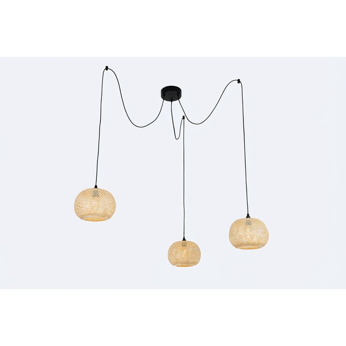 Ontdek de indrukwekkende 3-lichts buitenhanglamp Rafael, een echte blikvanger voor jouw buitenruimte. Deze royale buitenlamp is voorzien van drie bolvormige, gevlochten bamboekappen die samen een sfeervolle oosterse uitstraling creëren. Met een totale diameter van 129 cm en een verstelbare hoogte tot maximaal 150 cm komt Rafael prachtig tot zijn recht boven een grote buitentafel, veranda of overkapping. De lamp is ontworpen met oog voor zowel duurzaamheid als stijl. Het natuurlijke bamboe zorgt voor een warme, uitnodigende sfeer, terwijl de constructie stevig genoeg is voor langdurig gebruik in de buitenlucht. Dankzij de IP44-classificatie is Rafael geschikt voor beschutte buitenplekken, waarbij hij beschermd wordt tegen regen en vocht. Let op: de 3 benodigde E27 lichtbronnen worden niet standaard meegeleverd, dus bestel deze apart mee. In combinatie met dimbare lichtbronnen en een externe dimmer (niet inbegrepen) kun je de lichtintensiteit volledig afstemmen op de gewenste sfeer. Met de 3-lichts buitenhanglamp Rafael voeg je niet alleen verlichting toe, maar geef je jouw tuin een indrukwekkende en stijlvolle uitstraling.