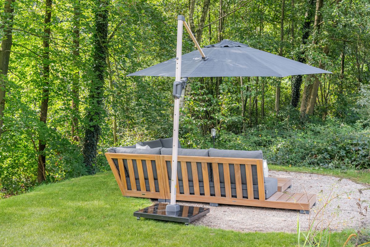Bovendien zorgt een grote parasol voor een intiemere sfeer op je terras, alsof je een buitenkamer creëert. Perfect voor zonnige lunches of zakelijke borrels in de buitenlucht.