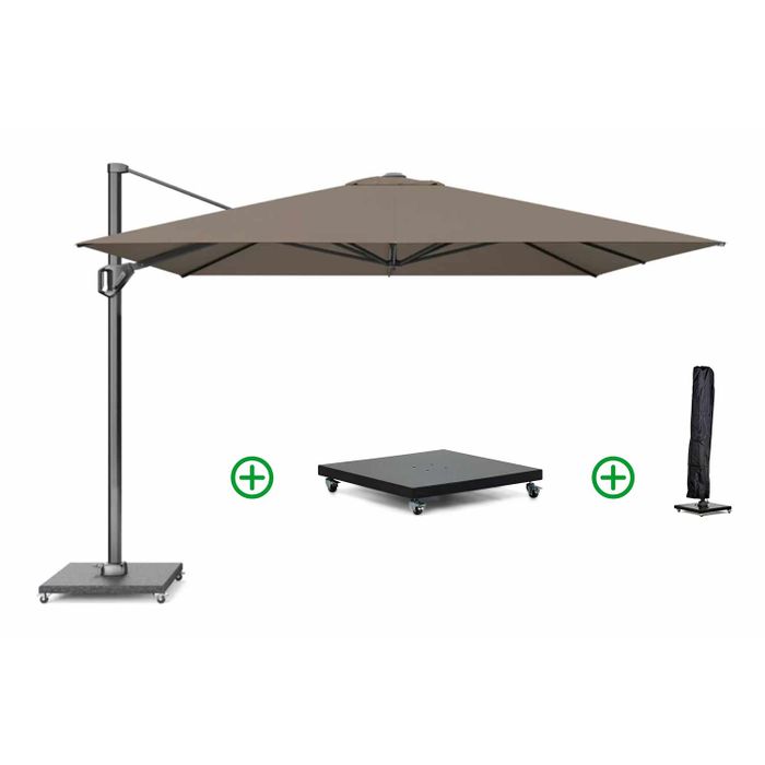 Platinum Challenger zweefparasol 3.5x3.5m T1 premium (incl. voet en hoes) havana