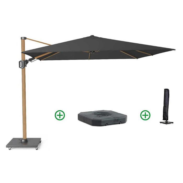 Platinum Challenger zweefparasol 3x3m T2 premium teaklook frame (incl. voet + hoes) faded black