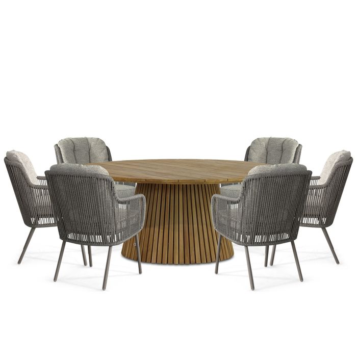 Met de Santika Cayora/Fungo 180 cm dining tuinset 7-delig kies je voor natuurlijke luxe, comfort en een verfijnde Japandi uitstraling — perfect voor stijlvol en ontspannen buiten dineren.