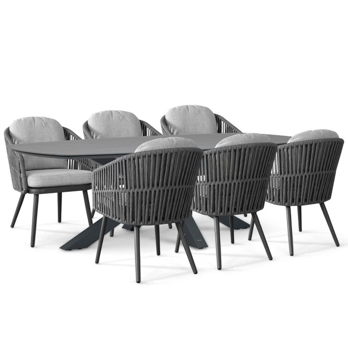 Met de Santika Marani/Voyage 240x120 cm dining tuinset 7-delig in antraciet kies je voor modern design, hoogwaardige materialen en uitstekend zitcomfort — een stijlvolle blikvanger voor iedere eigentijdse tuin.