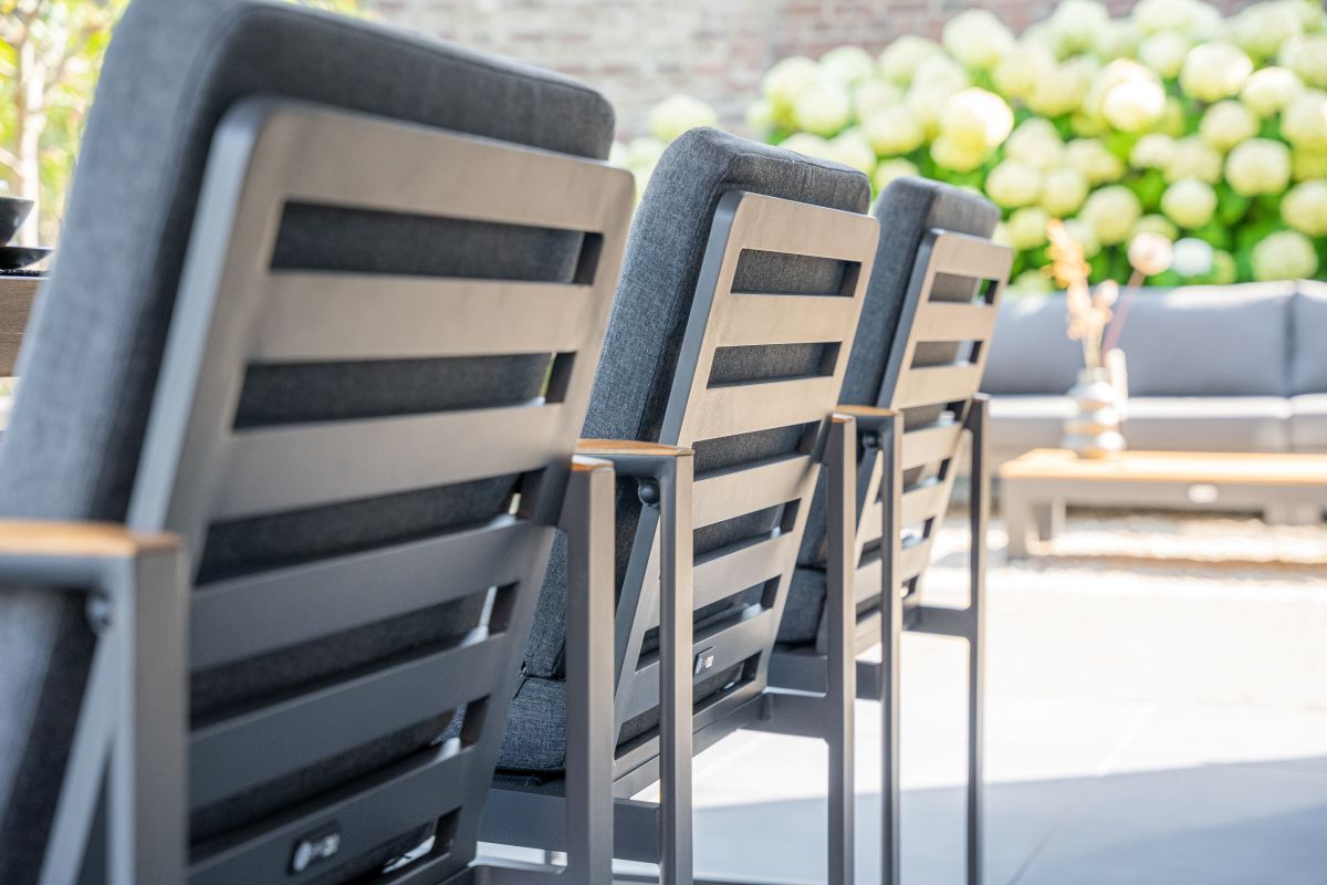 Daarnaast zijn er combinaties van materialen beschikbaar, zoals aluminium met rope voor extra stevigheid en stijl. Of een combinatie van aluminium met teakhout, voor een warme en luxe uitstraling. - Stapelbaar: Veel terrasstoelen zijn stapelbaar, ideaal voor het opbergen van je terrasstoelen. Een stapelbare terrasstoel geeft je terras meteen een opgeruimde uitstraling.